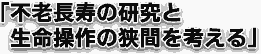 不老長寿の研究と生命操作の狭間を考える