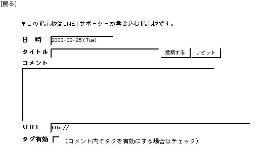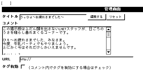 3,タイトルを記入し、コメント(本文)を書いてください。<タグ有効>のチェック欄はチェックしないままで結構です。